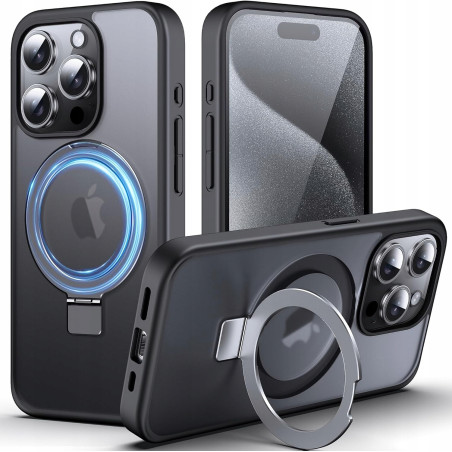 * DASFOND Mag-Stand – Czarne Etui do iPhone 15 Pro z Niewidocznym Stojakiem