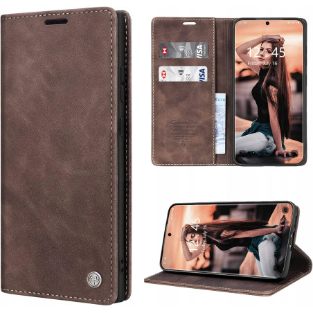 Skórzane etui typu portfel z funkcją stojaka | Magnetyczne zamknięcie | Przegródki na karty i gotówkę