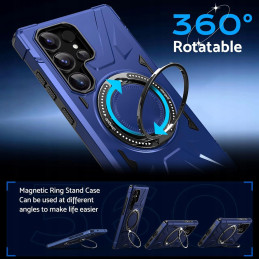 Etui pancerne do Samsung Galaxy S24 Ultra z magnetycznym uchwytem 360°, stojakiem i wsparciem MagSafe – niebieskie