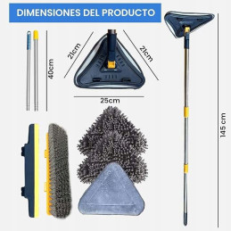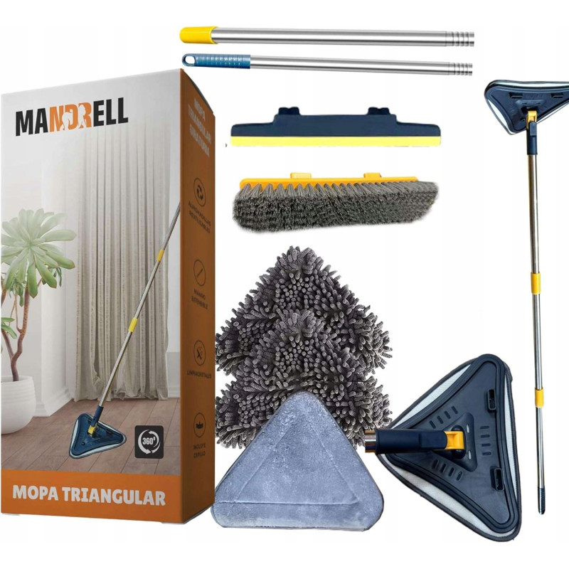 Wielofunkcyjny mop z trójkątną głowicą umożliwia dotarcie do trudno dostępnych miejsc, takich jak narożniki, krawędzie sufitu czy powierzchnie za meblami. Dzięki obrotowej konstrukcji oraz wymiennym końcówkom, to praktyczne narzędzie do kompleksowego sprzątania w domu.